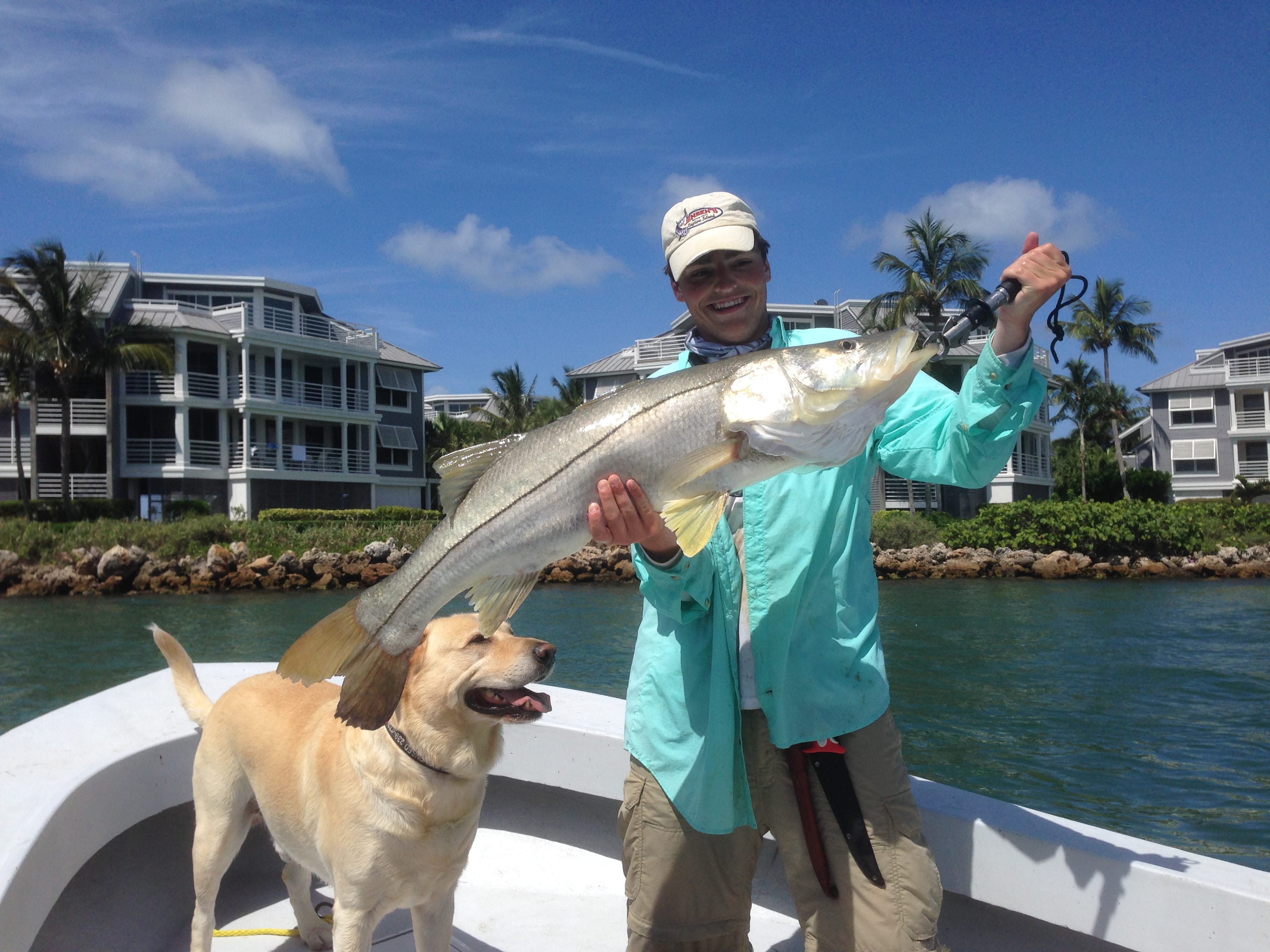 A very nice snook and a very proud smile! Caught in on a drift in Redfish Pass, just off South Seas Resort.