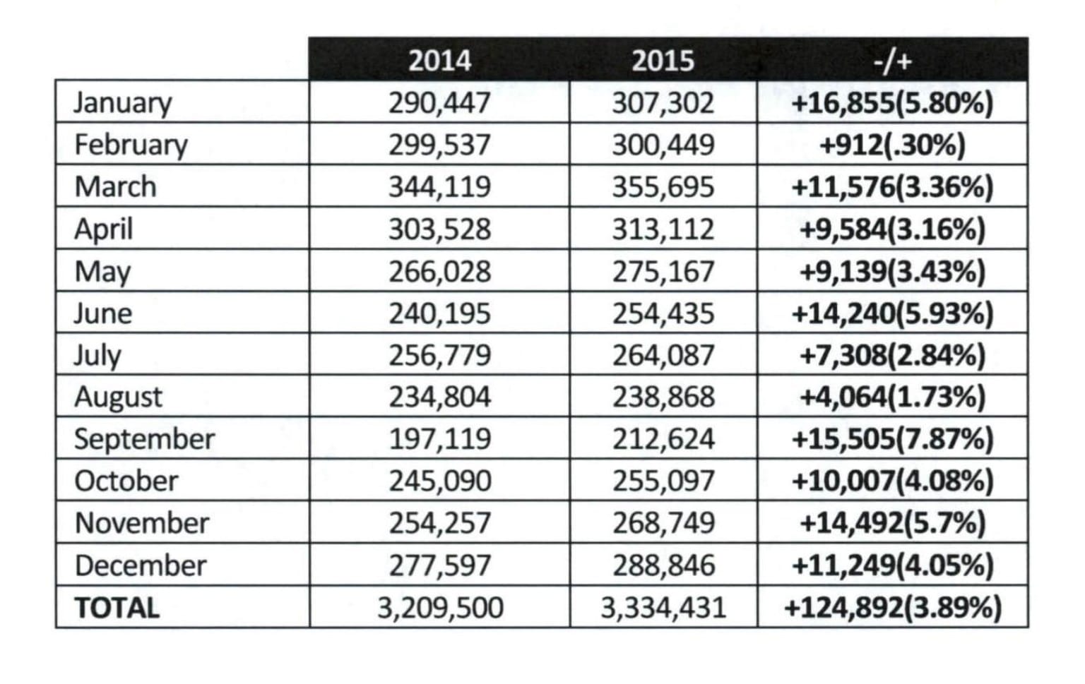 It is noteworthy to mention that December 2015 ha[d] the highest recorded traffic for the month of December since traffic first [began to be] recorded in 1975.